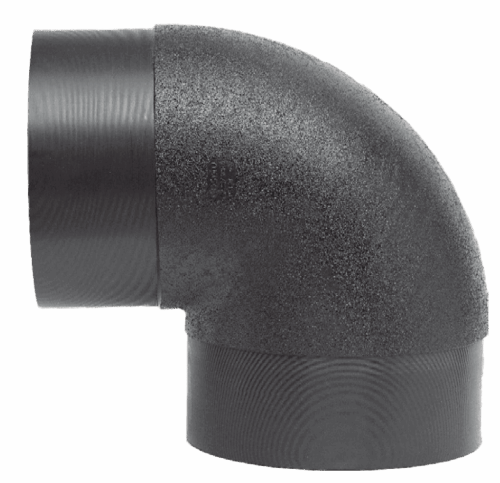 Right-angle turns in HDPE piping systems.
